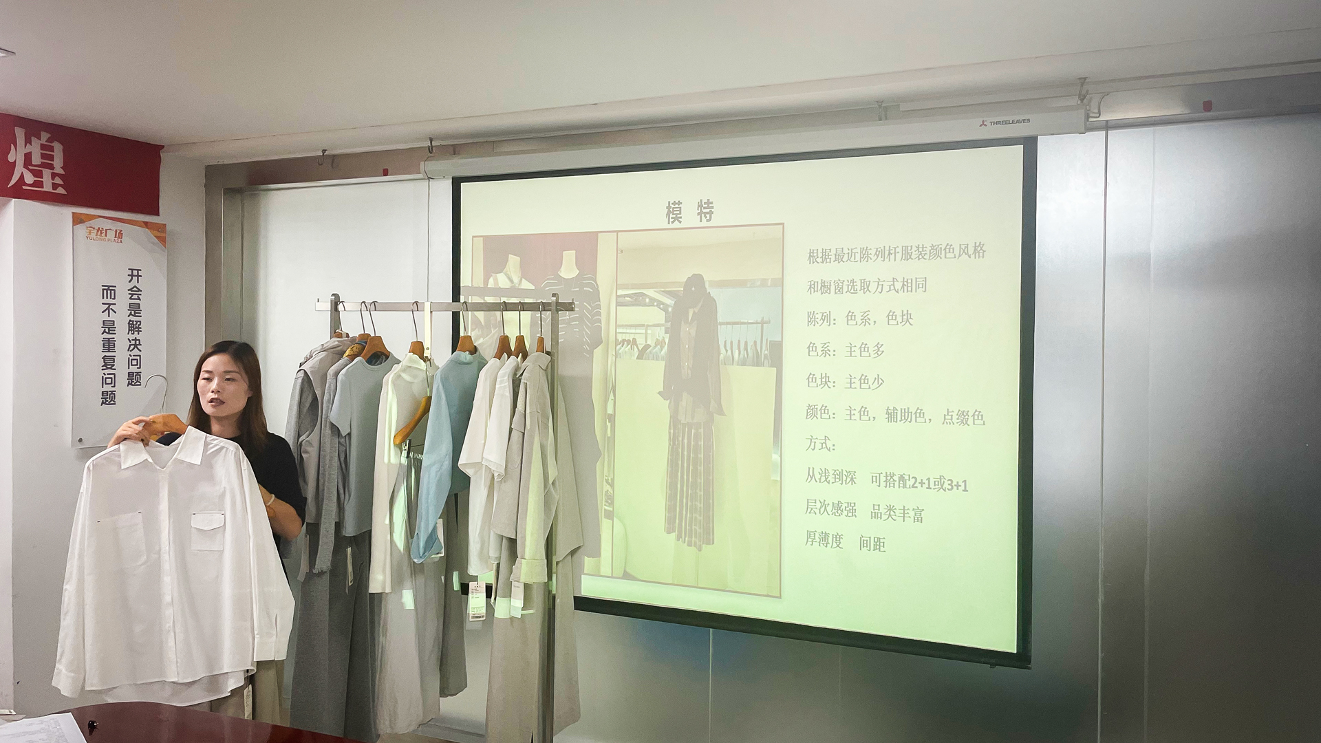 分享會聚焦陳列格局策略與色系系統(tǒng)規(guī)劃,深入解析櫥窗陳列如何結(jié)合天氣變化、實穿潮流與庫存調(diào)控,明確賣場A、B、C區(qū)分別承擔引流、新品展示和歸類陳列職能,并強調(diào)區(qū)域陳列風格應(yīng)與模特展示相統(tǒng)一,通過科學配色提升整體視覺層次。隨后現(xiàn)場借助真實服裝道具開展實搭演練,強化參會者對色彩搭配、動線設(shè)計與視覺營銷的實際應(yīng)用能力,助力通過優(yōu)化陳列布局提升店鋪形象、引導(dǎo)顧客動線,進而提高試穿率與連帶銷售。