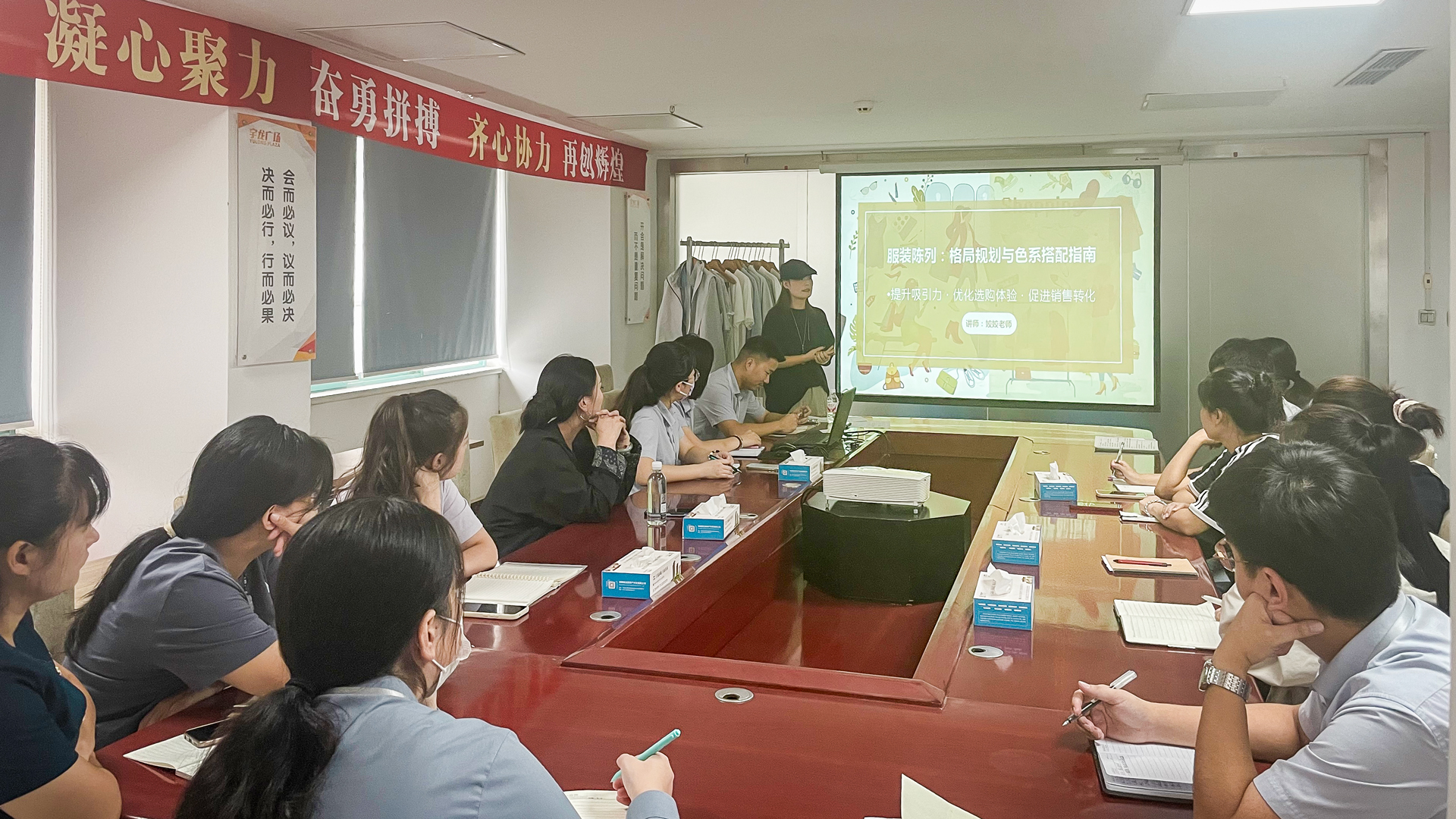 9月9日下午,商貿(mào)公司營業(yè)部在宇龍廣場四樓會議室召開了秋季商品陳列優(yōu)秀案例分享會。會議邀請二樓及其專柜店長嬌嬌擔任主講,各樓層主管與專柜員工代表參與,旨在通過實戰(zhàn)經(jīng)驗分享與互動交流,提升一線人員的陳列實操能力。